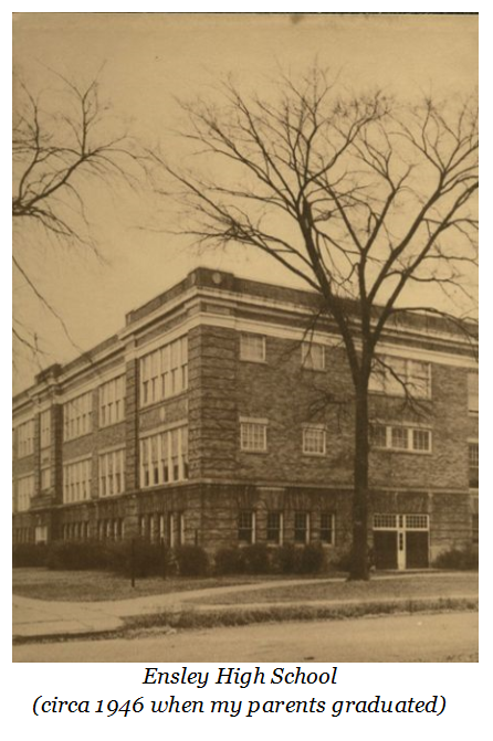 For more than a few of us, Ensley was a “kind grandmother,” for she had nurtured and disciplined our parents whom we followed, by only a generation, through her doors, up her stairs, and into her classroom desks where Mom and Dad had learned math, science, history, and literature—and, in some cases (my own, for example), where Mom and Dad had started dating and had fallen in love.