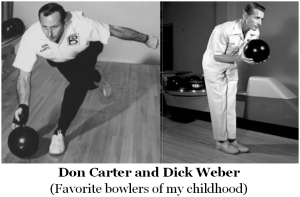 Then, one Saturday morning after the cartoons had finished, I stumbled on an amazing TV show: Professional Bowlers Tour.  I watched the greats—Dick Weber, Don Carter, and others—battle it out on the lanes.